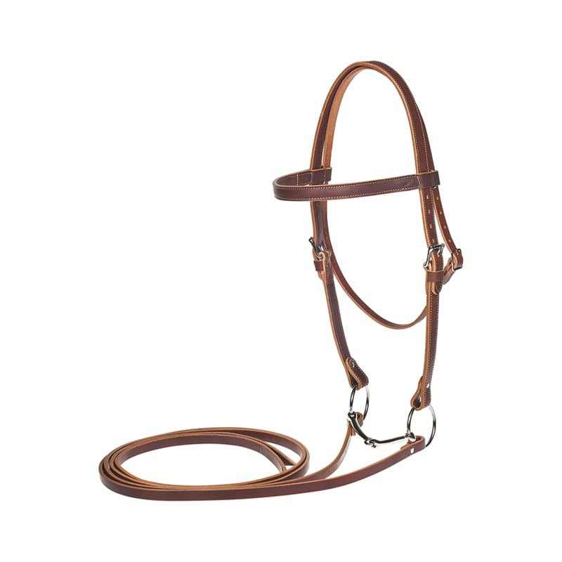 The Fancy Stitch Snaffle Bridle Bridle is beautiful, traditional, and economical. Finely crafted with durability and versatility in mind, the Advantage bridle is made to last and be a staple in your tack trunk. This bridle features white detail stitching on the nose and brow bands. Made from quality, imported leather and stainless steel hardware. Complete with laced reins, this bridle is ready to be used! Dimensions: 5/8″ nose and brow band, 1/2″ cheek pieces, 5/8″ laced reins